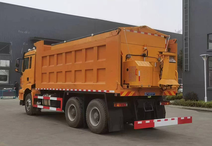 | 上裝配置 | 箱體采用優(yōu)質(zhì)碳鋼板,標配10立方撒布機也可以選裝12立方,不銹鋼撒布機甩盤,撒布盤直徑550mm,撒布機采用 V 型料倉,結(jié)構(gòu)簡單可靠,使融雪劑自動落料,出料完全,無殘留,箭頭燈、篷布、過濾網(wǎng)、后爬梯。加裝3.5米雪鏟,可切換3.5米除雪滾刷(滾刷可選自帶動力或者液壓取力)。 | ||